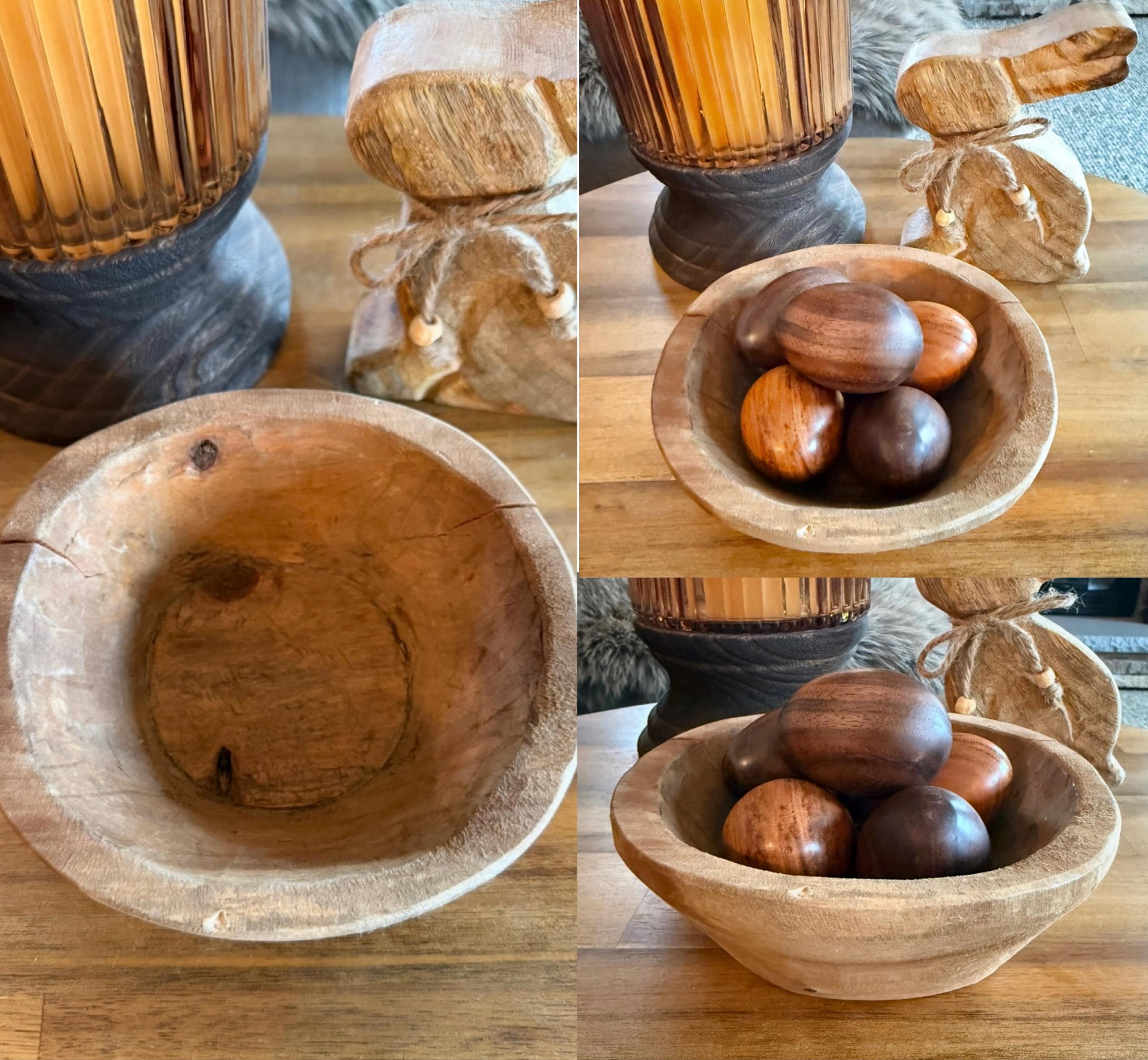 ✺ This round, raw-finish dough bowl is a simple, one-of-a-kind piece that brings warmth and texture to any space. Perfect for styling on a coffee table, holding keys by the entryway, or adding a timeless accent to your shelves. Each bowl is handmade from natural wood and may vary slightly in size and shape, making every piece uniquely yours. Their imperfections are part of their charm, embracing the raw, organic beauty of hand-carved craftsmanship.