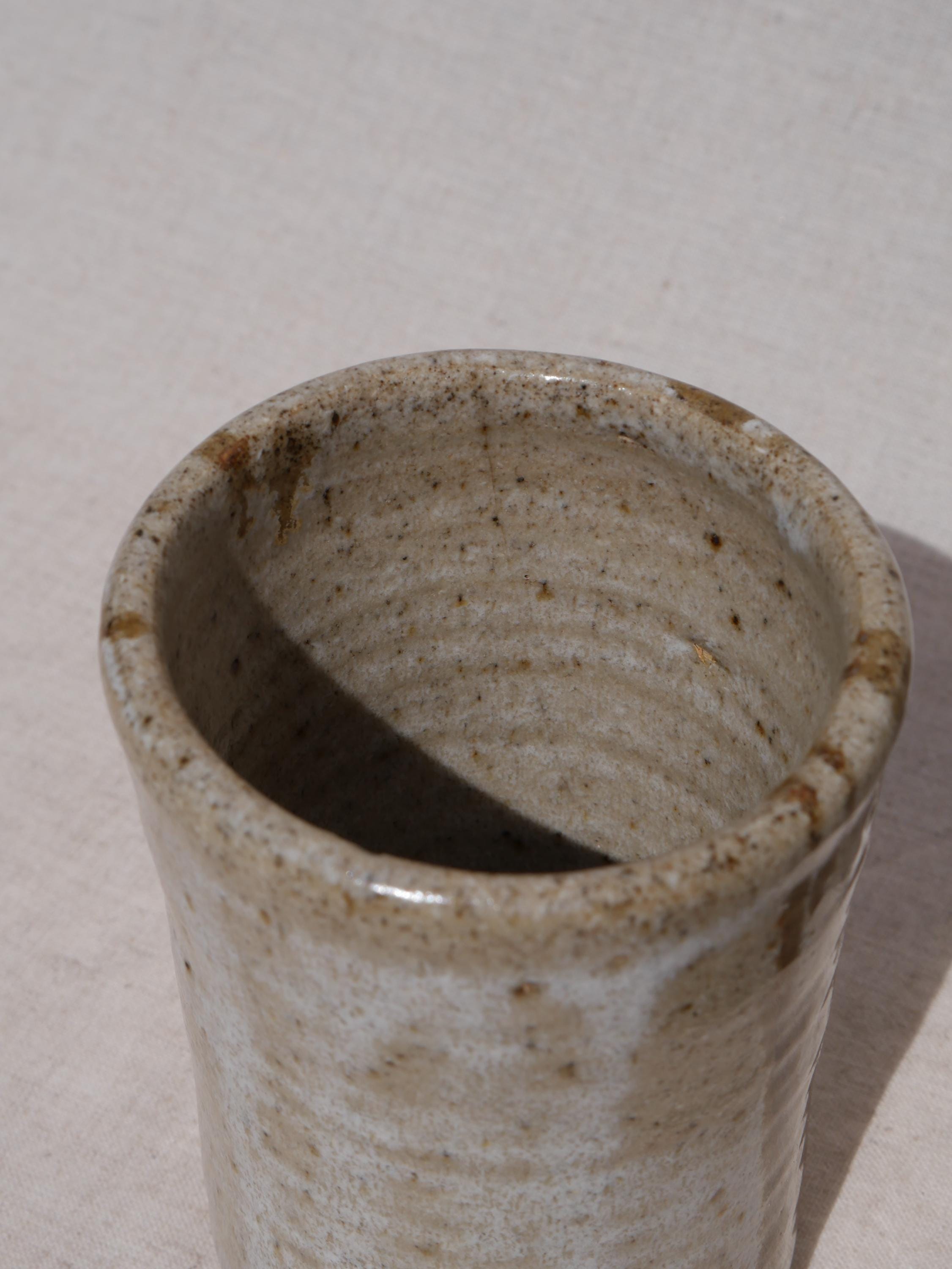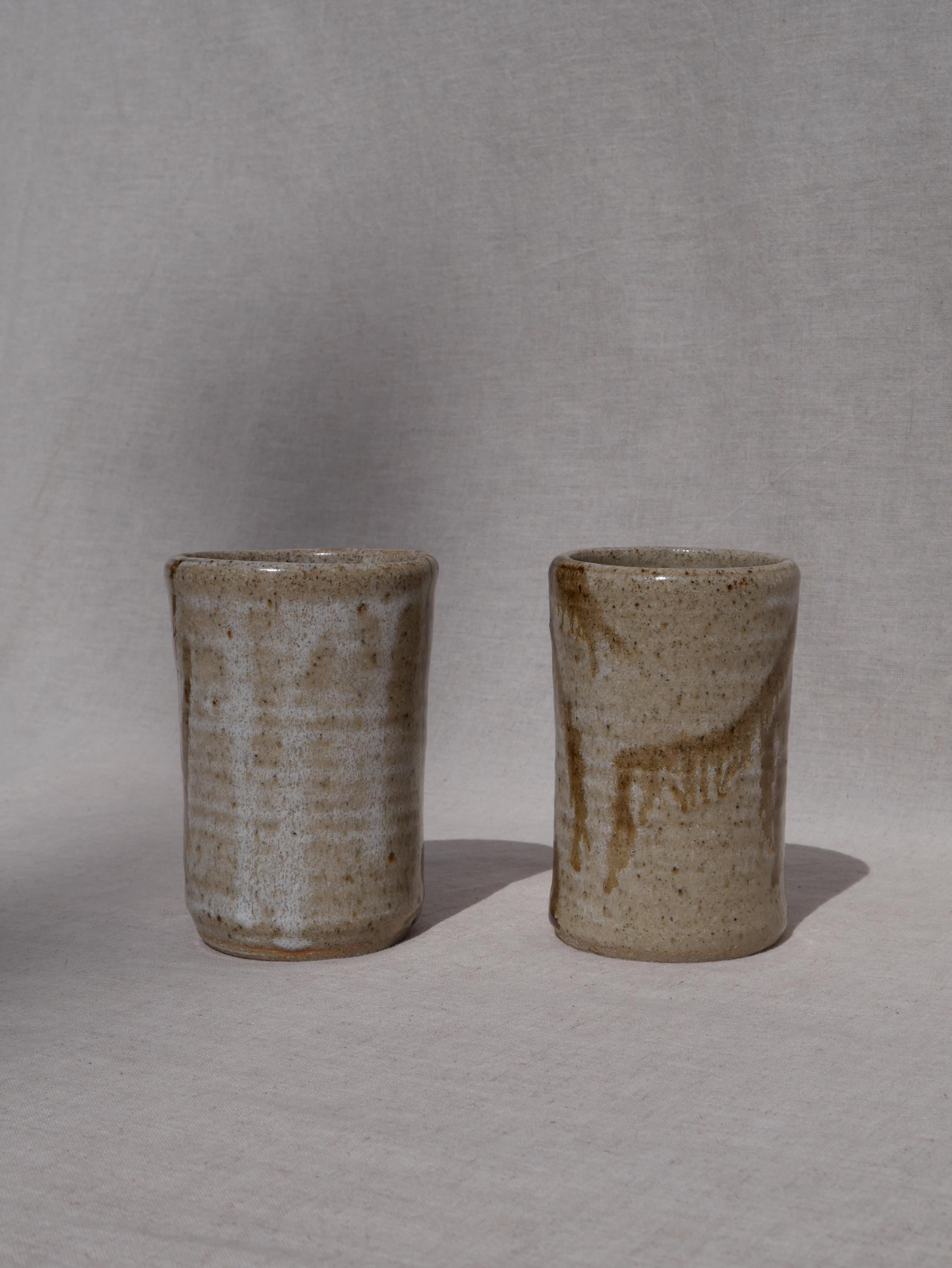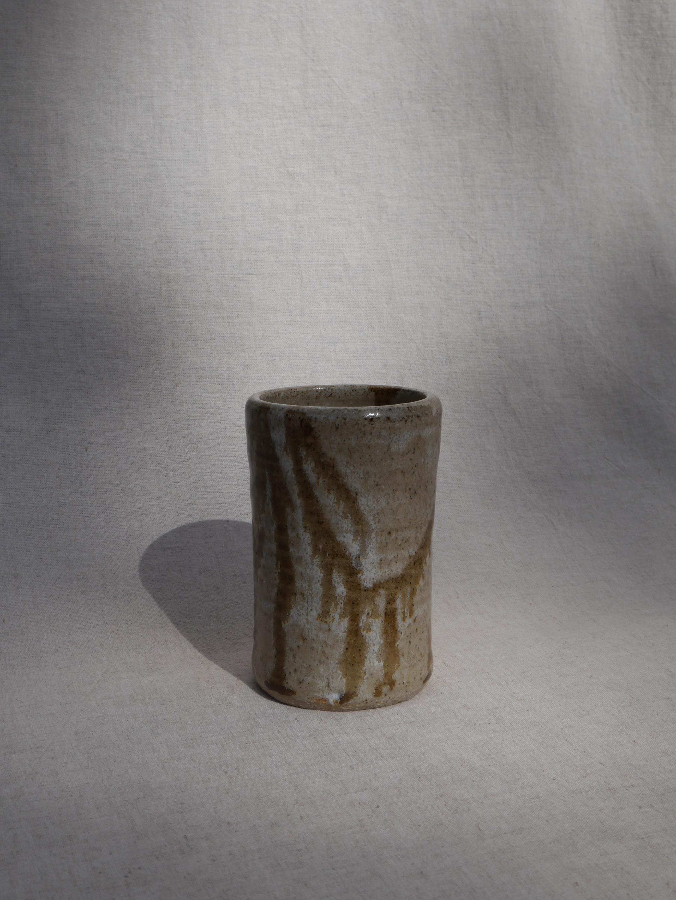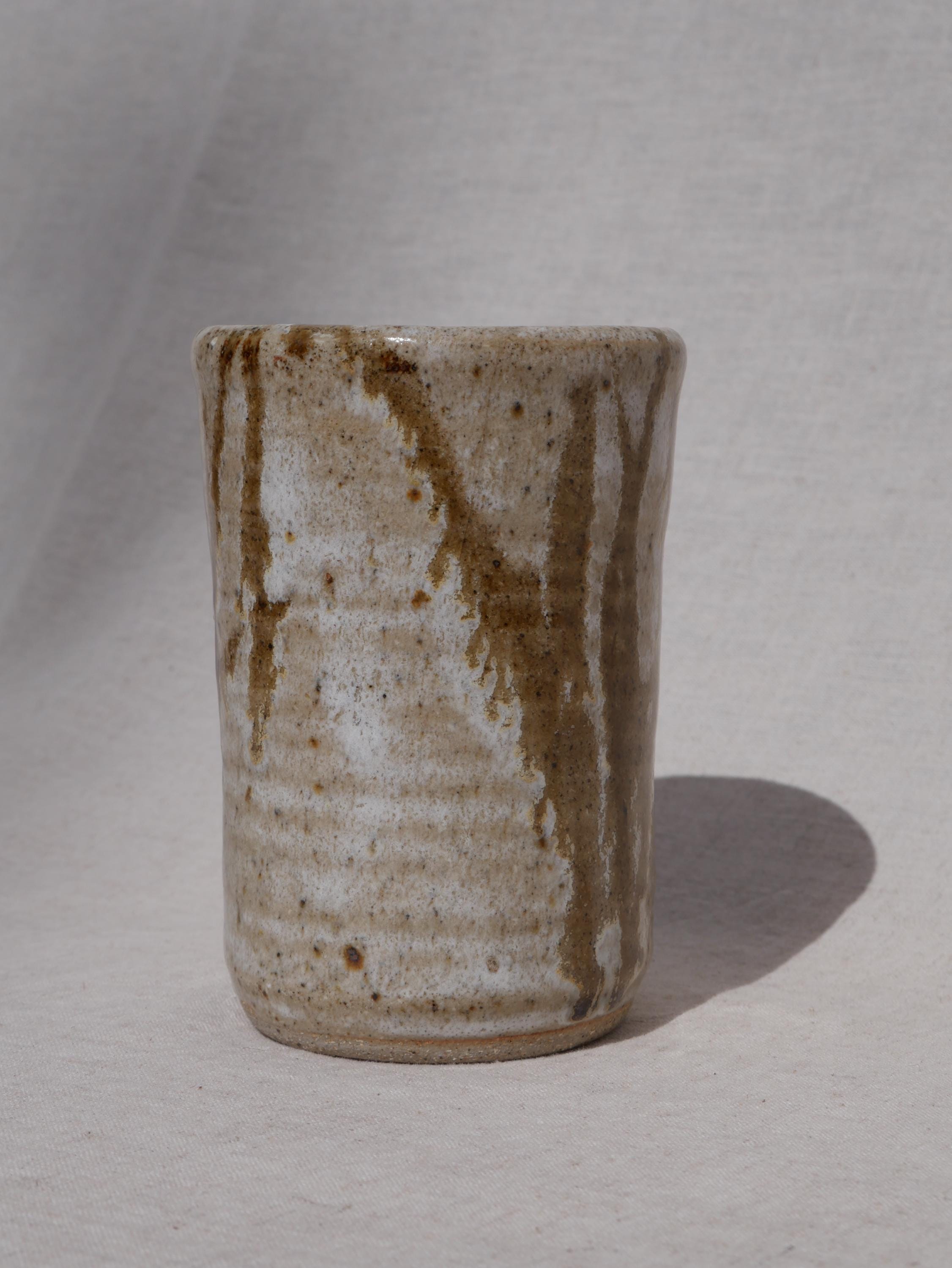 ✺ These vintage studio pottery tumblers boast hand-glazed swirls in earthy tones, adding warmth and character to any space. Handmade by an artist in Colorado, this coffee mug blends function with rustic elements. The tan and brown glaze is simple yet full of character, making it a evocative piece for daily use or display. Ideal for morning coffee, tea, or cocoa, this mug adds an artisan touch to everyday routines. It’s sturdy, comfortable to hold, and crafted with care to last for years.