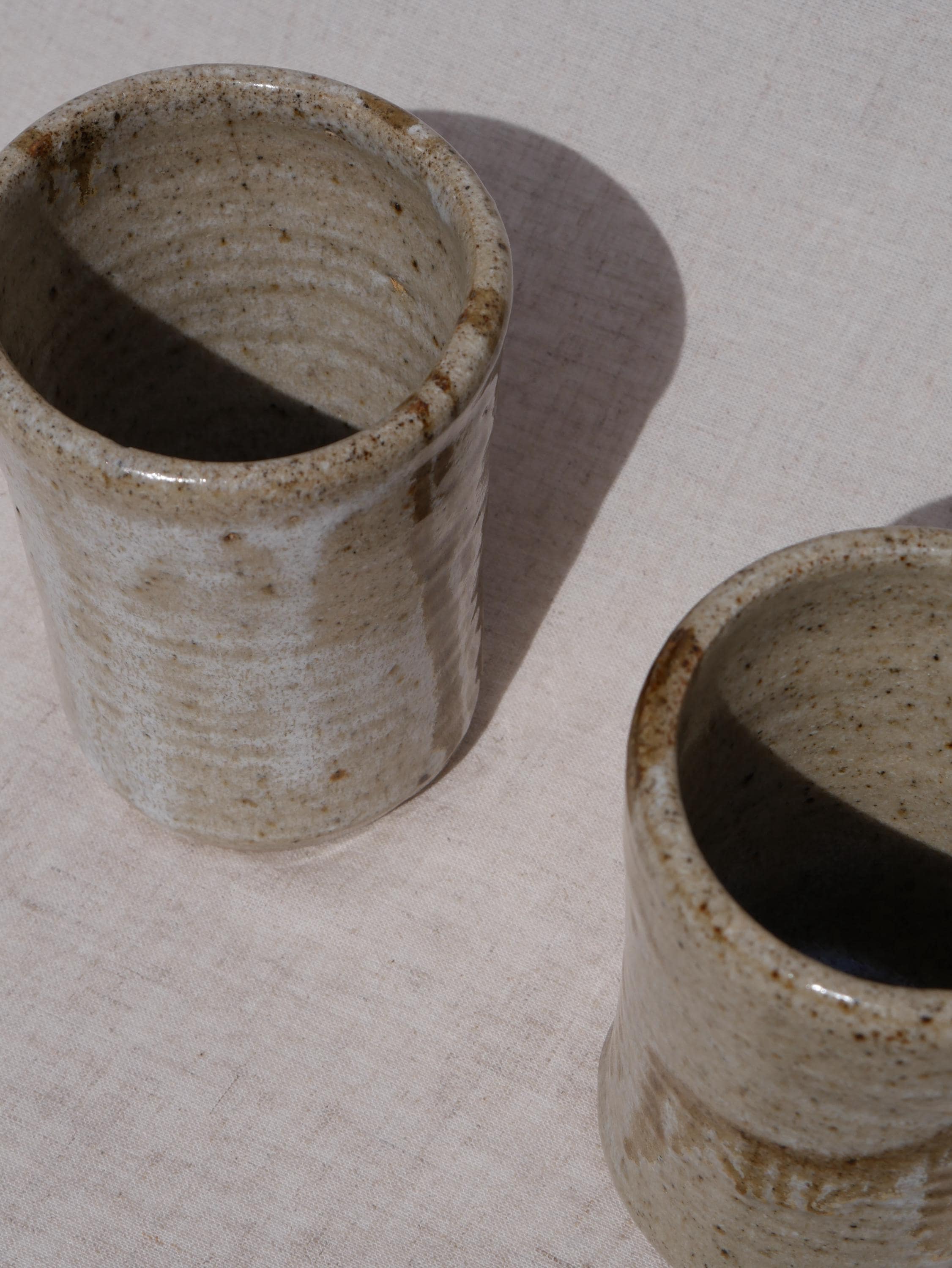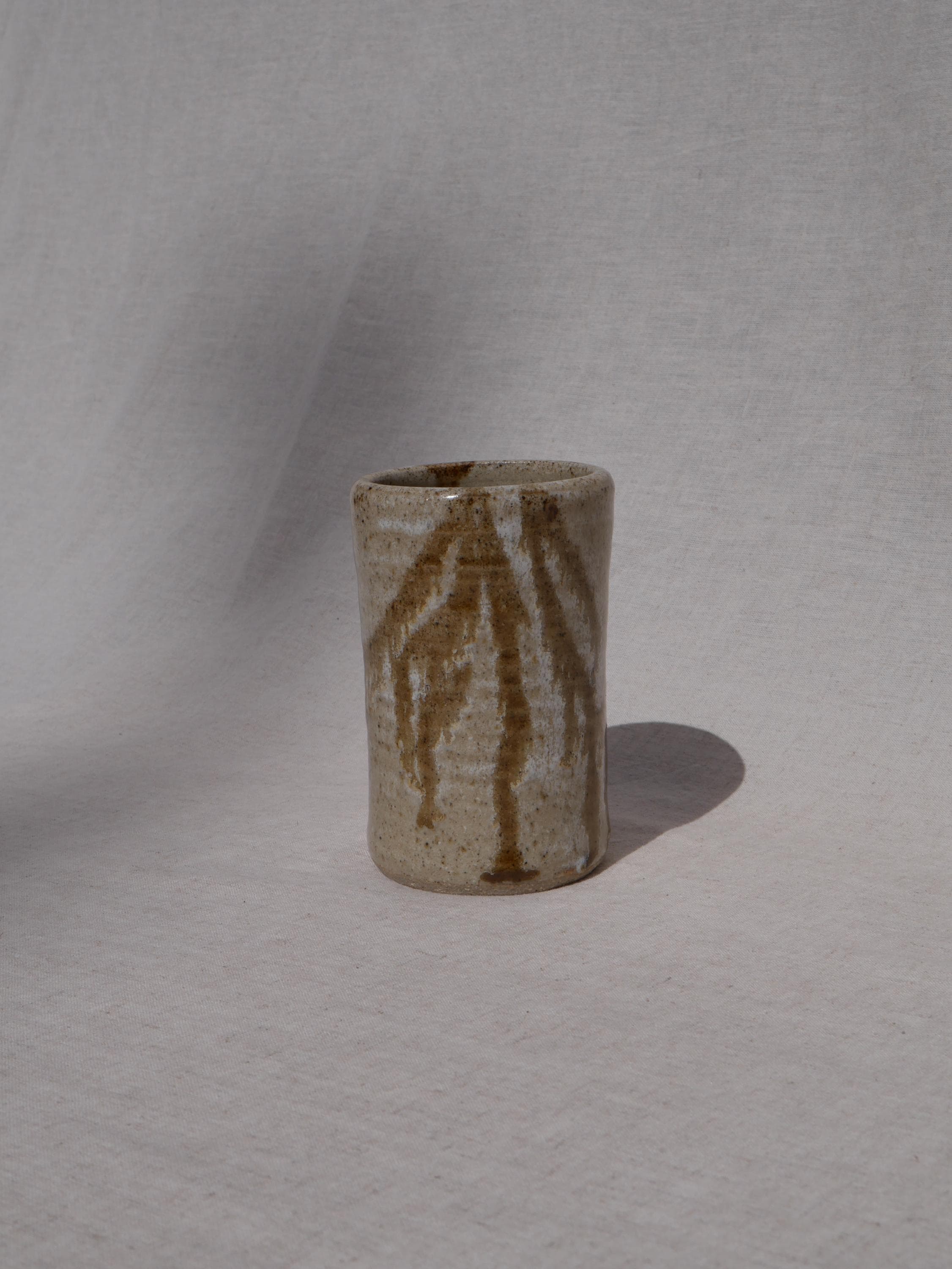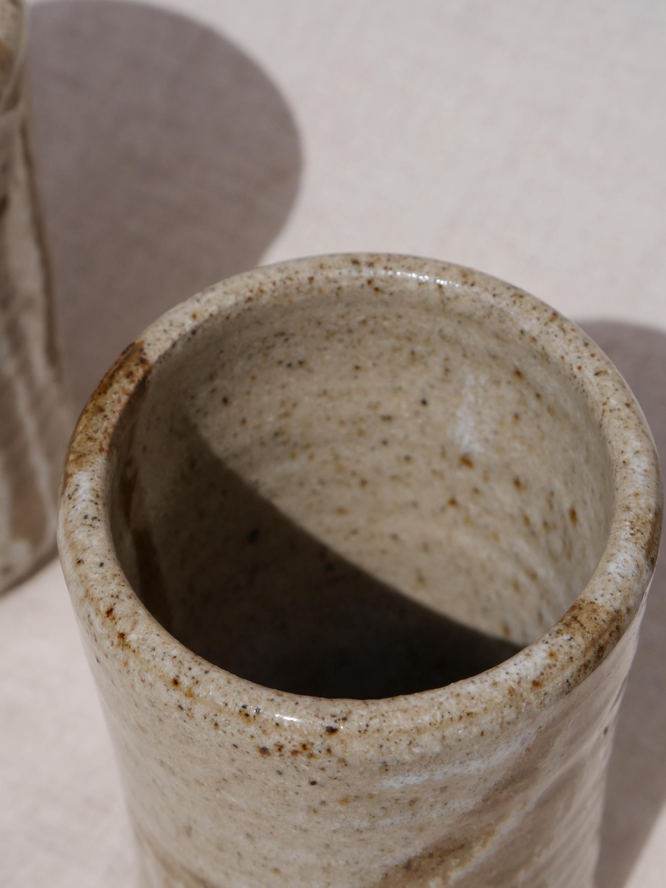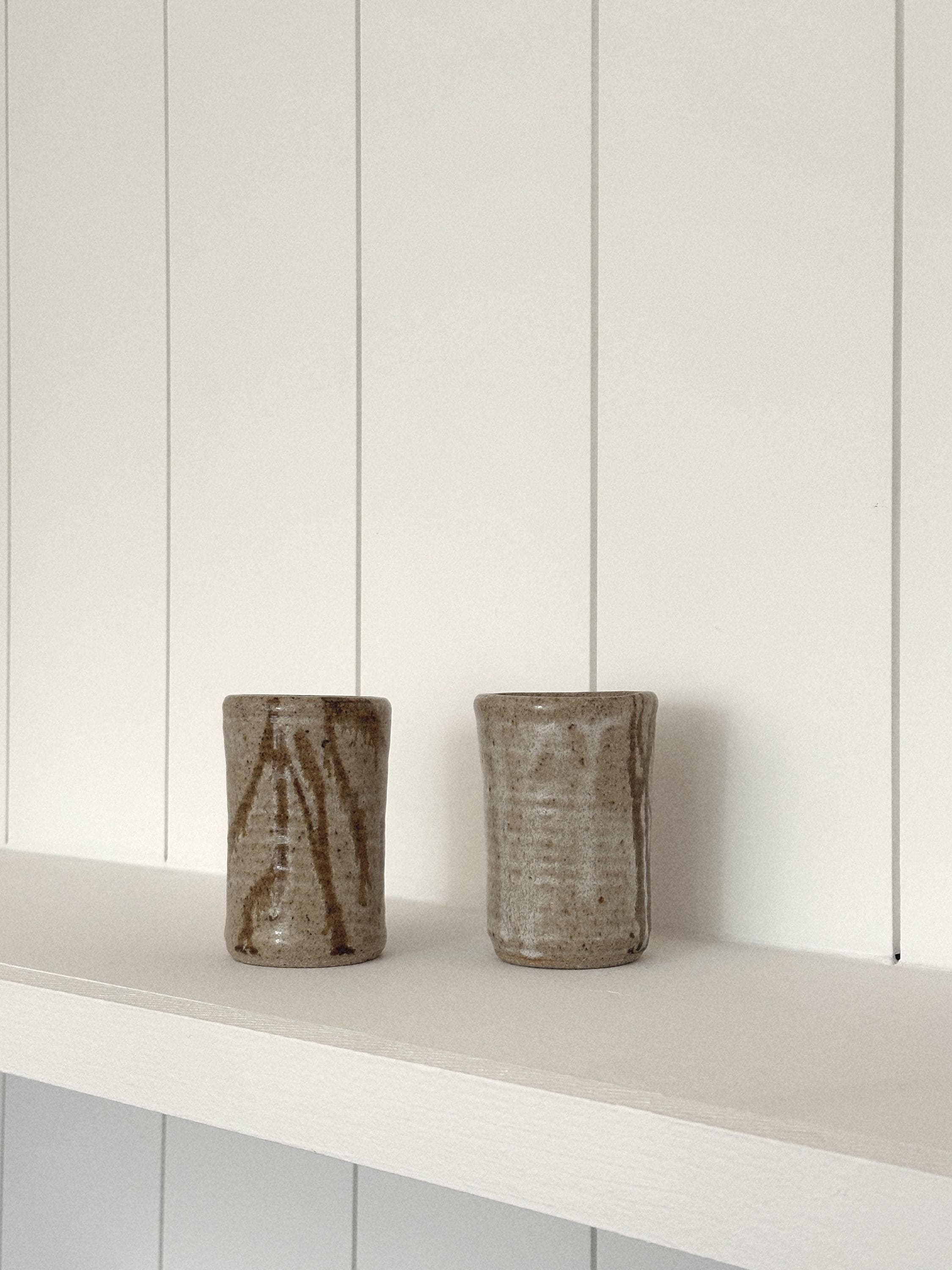 ✺ These vintage studio pottery tumblers boast hand-glazed swirls in earthy tones, adding warmth and character to any space. Handmade by an artist in Colorado, this coffee mug blends function with rustic elements. The tan and brown glaze is simple yet full of character, making it a evocative piece for daily use or display. Ideal for morning coffee, tea, or cocoa, this mug adds an artisan touch to everyday routines. It’s sturdy, comfortable to hold, and crafted with care to last for years.