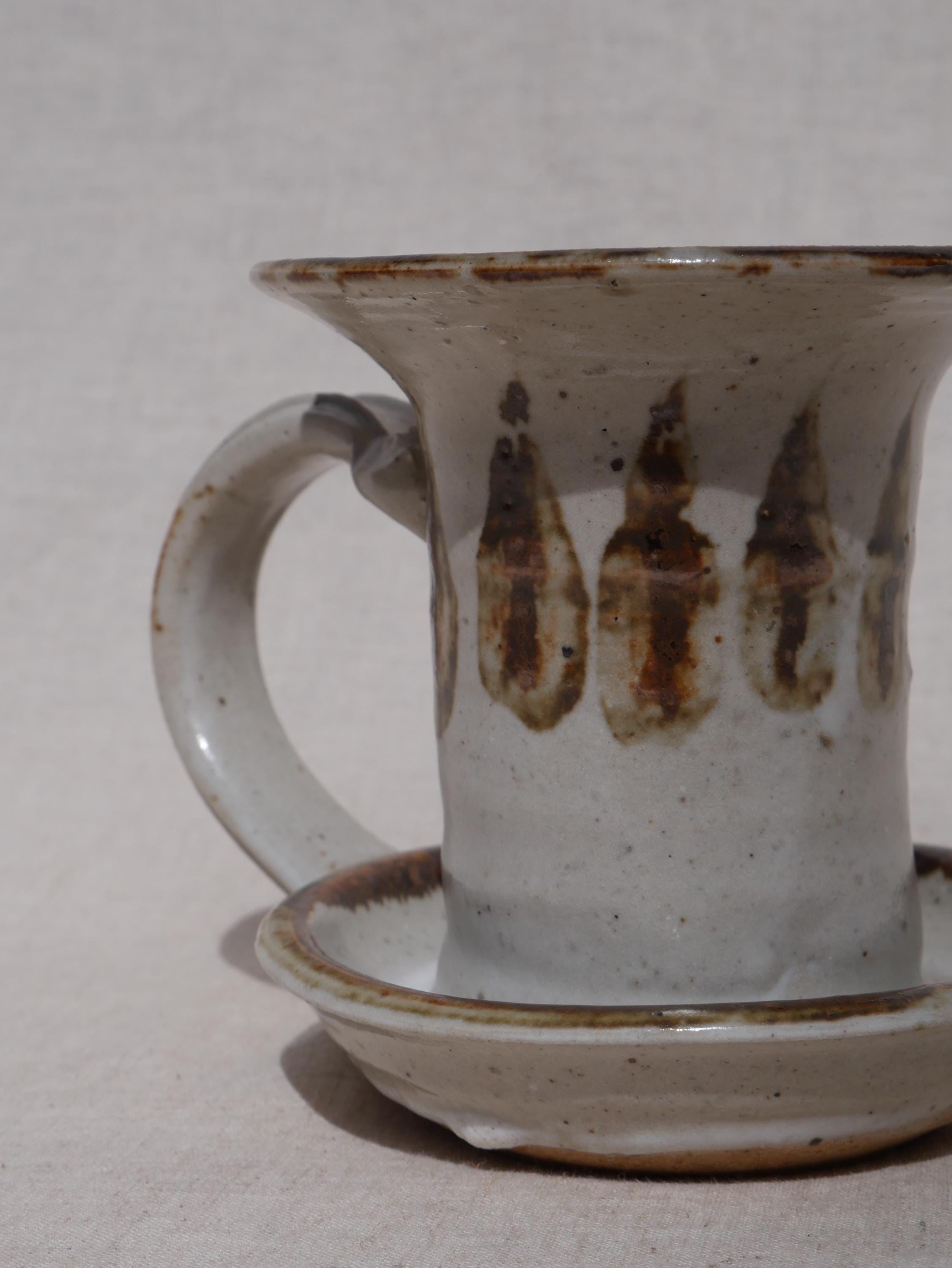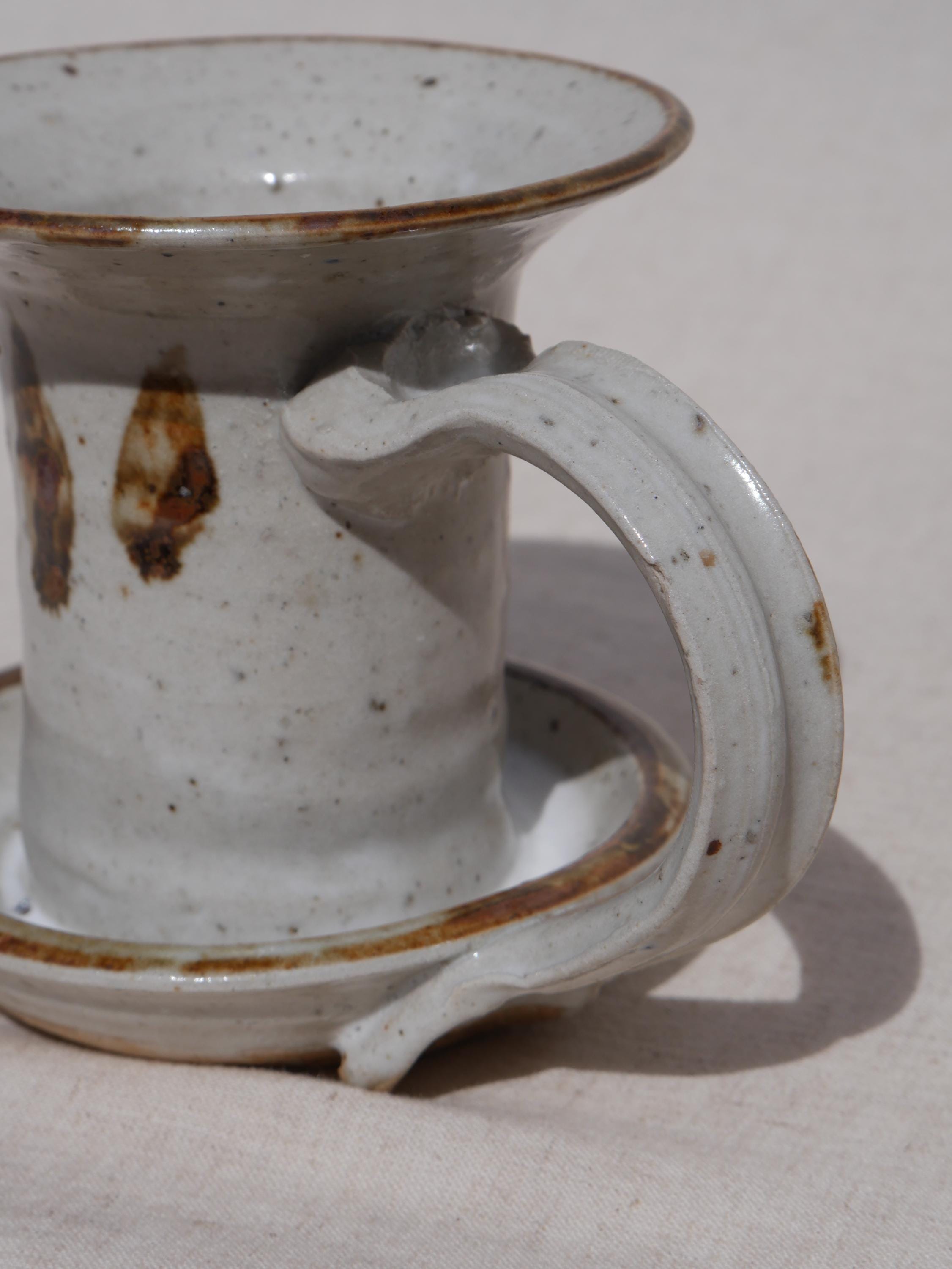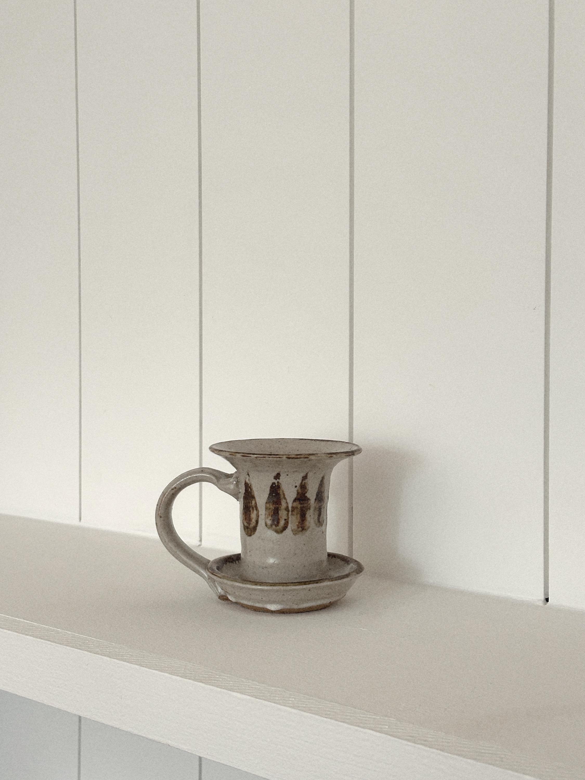 ✺ An unusual and unique handmade pottery piece — part chamber stick candle holder, part small vase. Its versatile shape makes it just as fitting for a taper candle as it is for holding wildflowers. The earthy glaze features a drip style finish inside and out, paired with a hand-applied handle that gives it a primitive, boho, and slightly country feel. This is the kind of piece that adds character wherever it’s placed — whether styled on a shelf, bedside table, or dining setting.